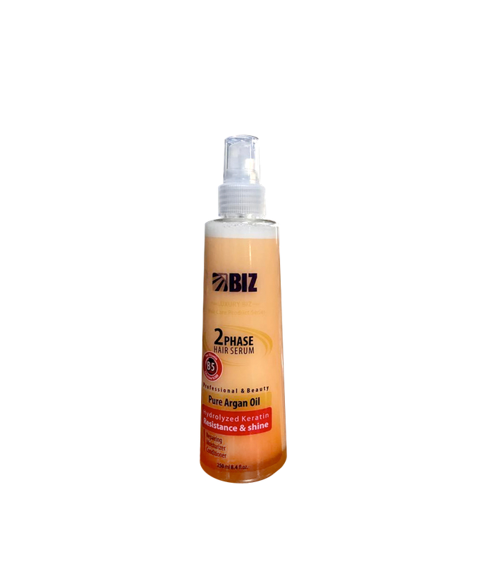 سرم دو فاز مو آرگان، بدون نیاز به آبکشی ، باعث نرمی و لطافت بسیار بالای مو و تقویت و آبرسانی تار مو ( ساقه و نوک مو ) می شود. روغن آرگان این سرم مو، منبع غنی از ویتامین E است که موجب ترمیم موها می شود و بدلیل دارا بودن خواص آنتی اکسیدان قوی، از ایجاد موخوره و وز شدن موها جلوگیری می کند. سرم دو فاز مو آرگان، حالت پذیری موها را افزایش داده و با حفاظت از تارهای مو در مقابل حرارت سشوار و اتوی مو، ظاهری درخشان و زیبا به موها می بخشد.